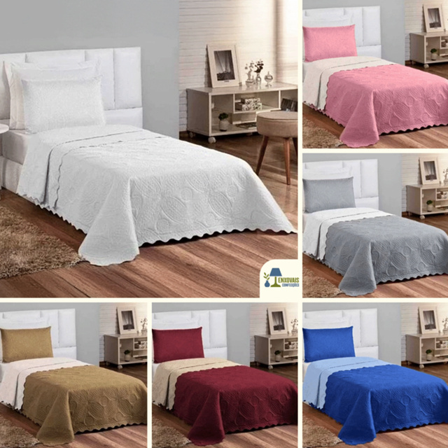 | Kit Cobre Leito Colcha Solteiro Liso 1,60x2,40m Dupla Face este produto | R$ 47,90 | 36% | 4.8/5 | 298 |