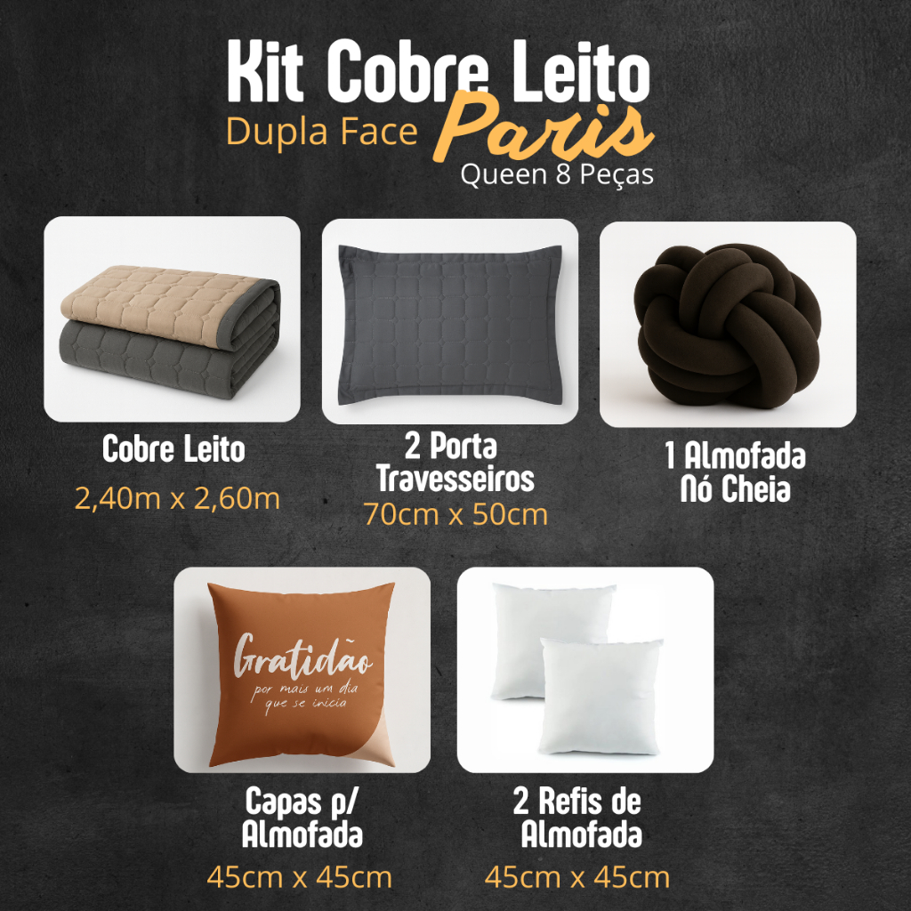 Kit Cobre Leito Dupla Face Paris Queen 08 Peças Original