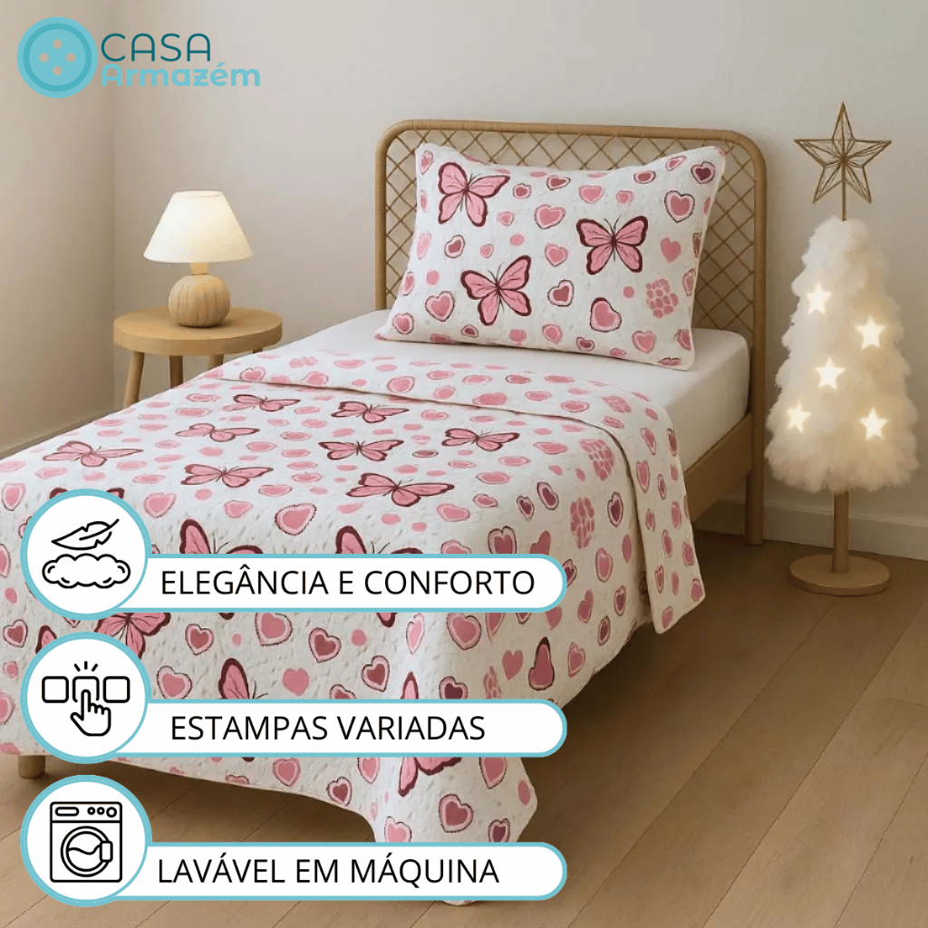 Kit Cobre Leito Infantil 2 Peças Menino/Menina Solteiro Estampado – Qualidade Premium Dupla Face