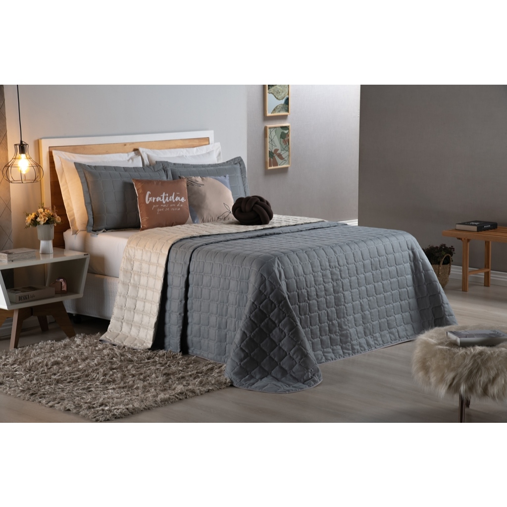 Kit Cobre Leito Paris Queen 8 Peças E Solteiro 5 Peças Com Almofadas Decorativas