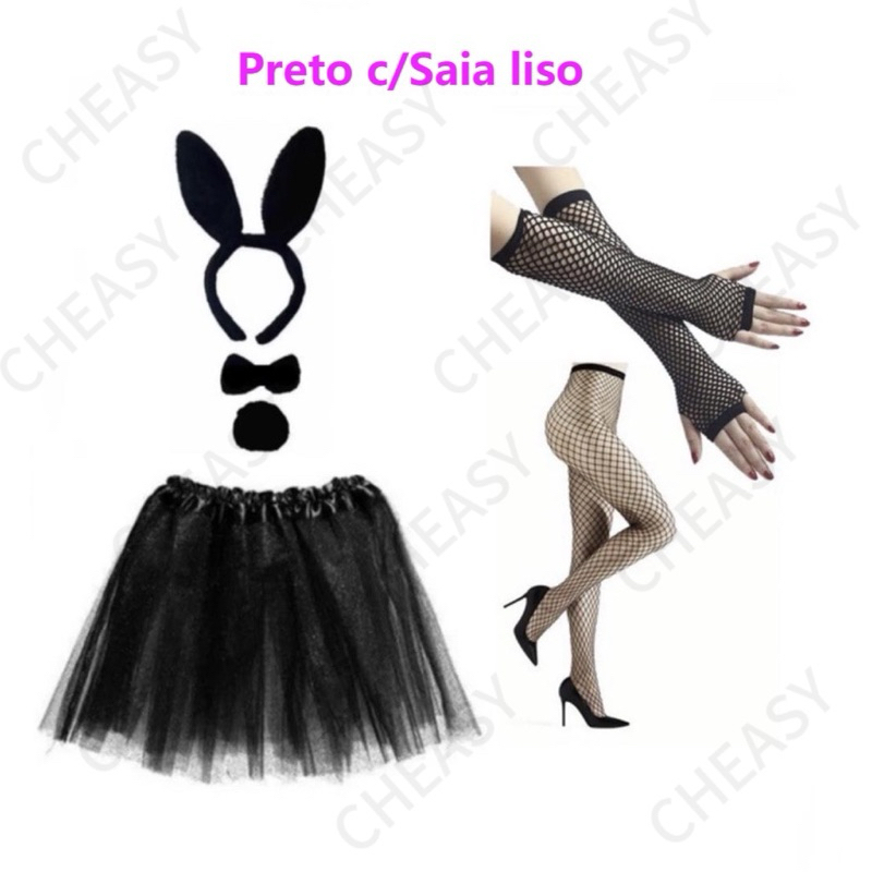 Kit Coelho + Luva +Meia + Saia Tule /Fantasia Coelho Festas Carnaval
