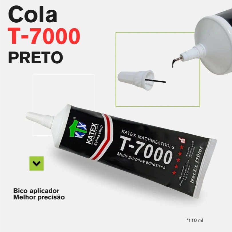Kit Cola Adesiva B-7000 ou T-7000 | 15ml e 110ml Alta fixação, versatilidade e acabamento profissional em um só kit! Escolha entre os modelos B-7000 ou T-7000, nas versões de 15ml ou 110ml, ideais para reparos em celulares, telas, touch, componentes eletrônicos, bijuterias e artesanato. A cola B-7000 é conhecida por sua excelente aderência em superfícies lisas como vidro e metal, enquanto a T-7000 se destaca por sua coloração preta, perfeita para colagens mais discretas e uso em áreas visíveis. Indicações de Uso: ️ Troca de telas e touch em celulares ️ Reparos em componentes eletrônicos ️ Fixação de lentes, capas e molduras ️ Trabalhos manuais, artesanato e DIY Especificações Técnicas: Modelos: B-7000 (Transparente) ou T-7000 (Preta) Volume: 15ml ou 110ml Bico aplicador de precisão Secagem inicial: 3 a 6 minutos Cura total: aproximadamente 24h Alta resistência à água e impactos ️ Atenção: Produto de uso profissional e doméstico Utilize em local ventilado Mantenha fora do alcance de crianças Garanta agora seu kit de colas B-7000 ou T-7000 e tenha em mãos uma solução confiável e duradoura para todos os tipos de colagens!