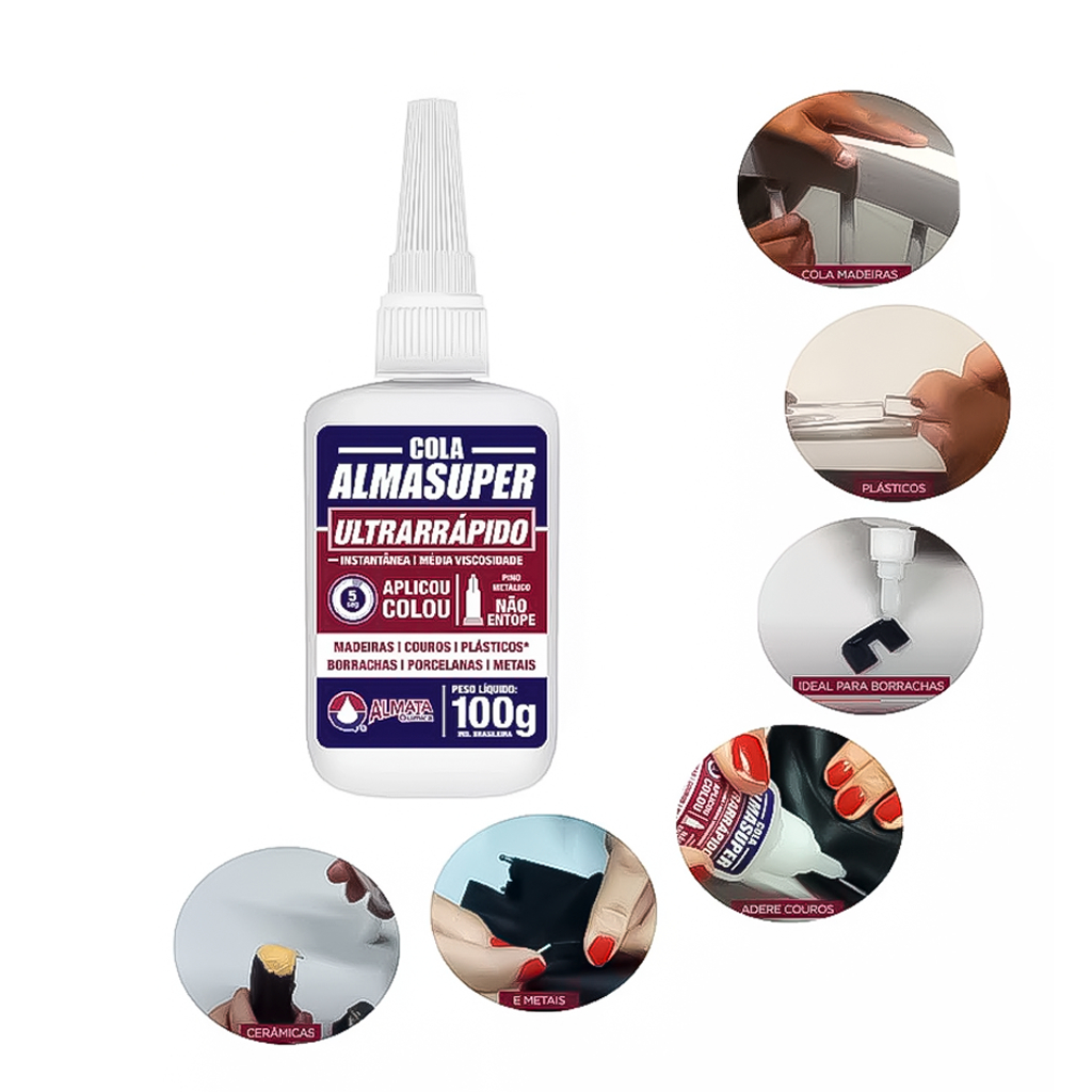 Kit Cola Universal + Ativador Colagem Rápida Acelerador Anti Entupimento Aplicou Colou ALMASSUPER