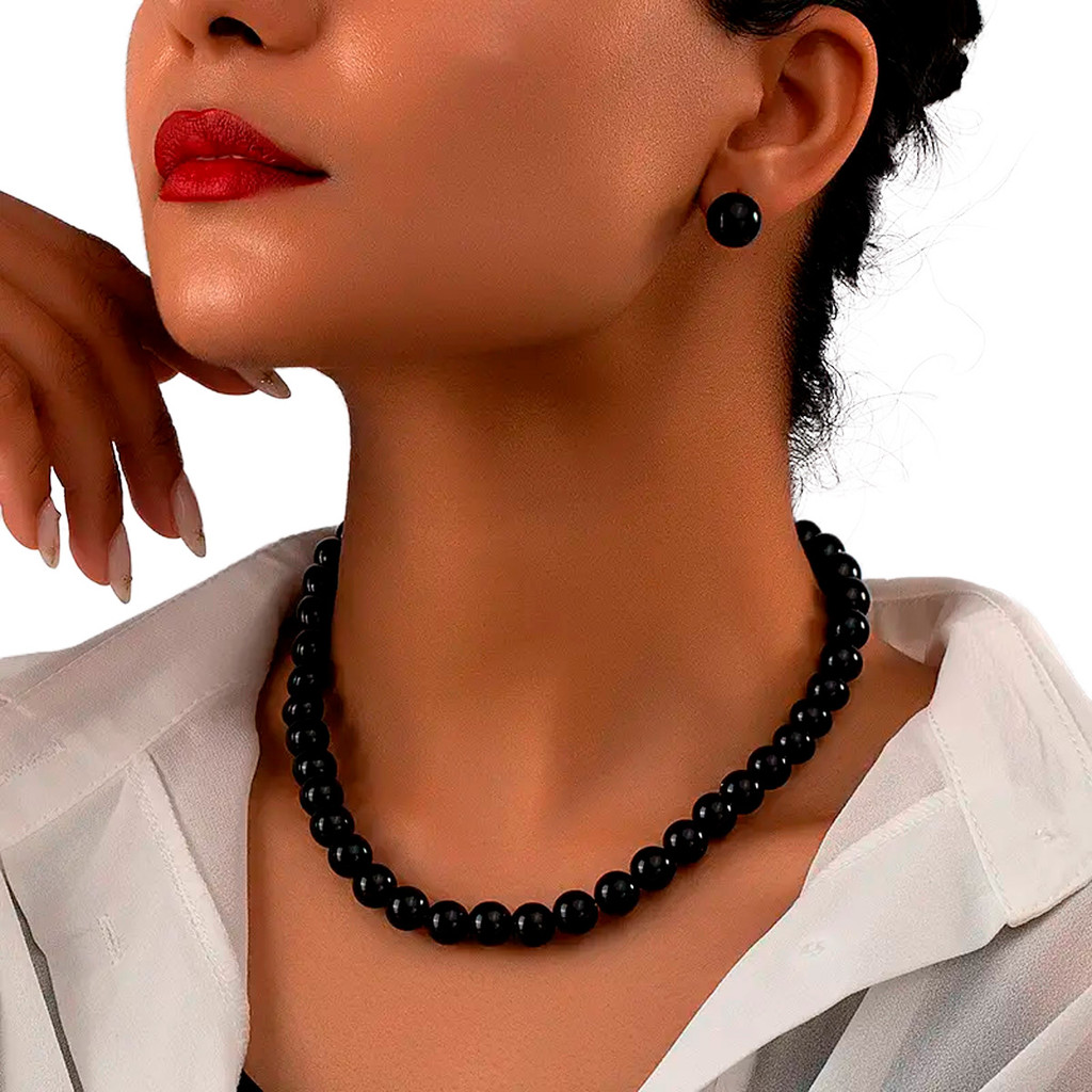 Kit Colar + Brinco Pérola Preto Delicado Festa Presente Luxo