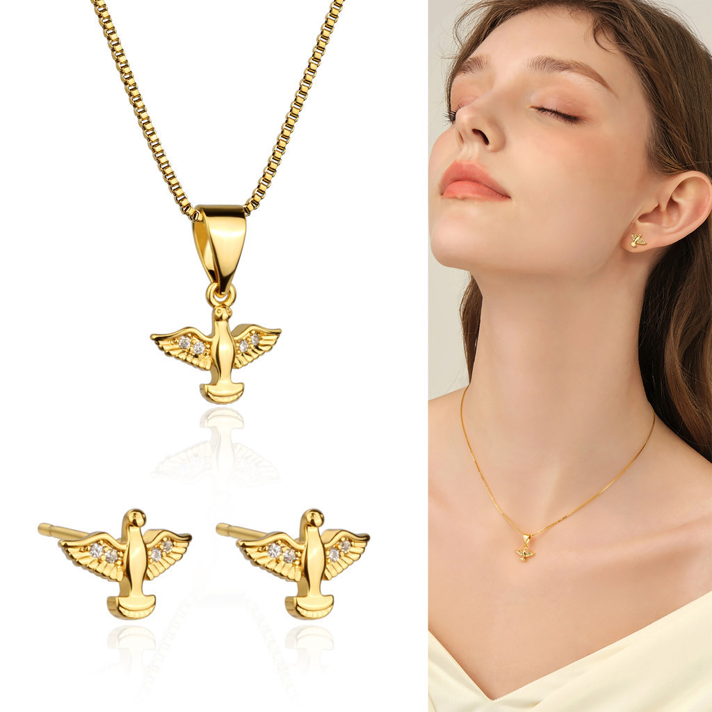 Kit Colar Brincos Feminino Elegante Conjunto Folheado a Platina Pássaro Zircônia Cravejada