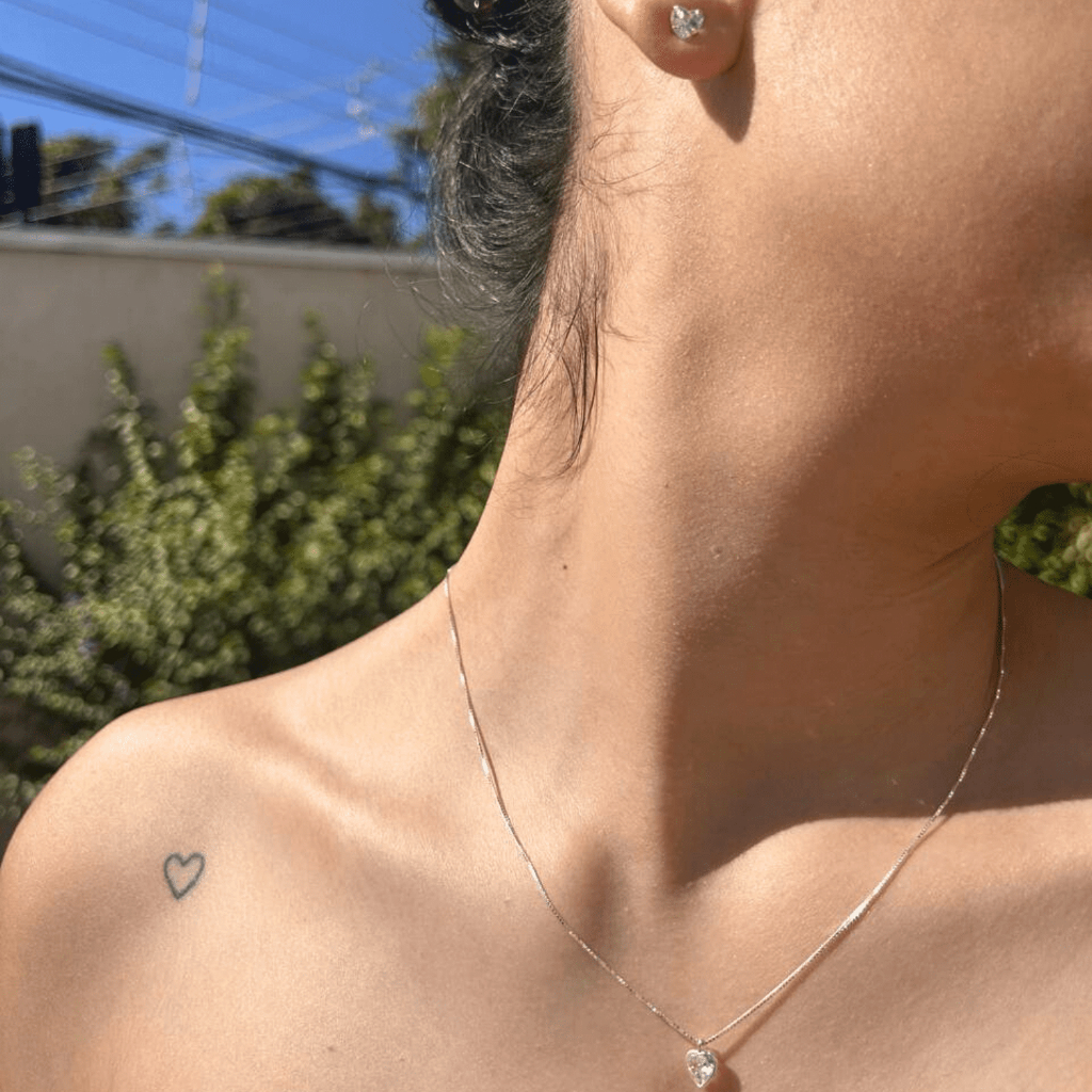 Kit Colar + brincos ponto de luz coração 4mm