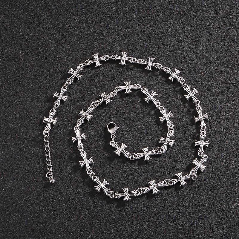 Kit Colar corrente cordão + pulseira com pingente de cruz punk swag y2k