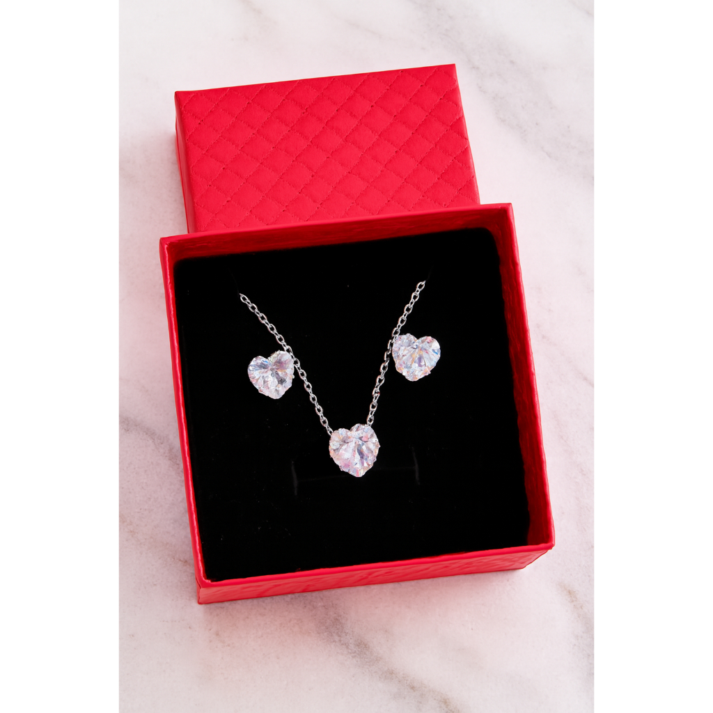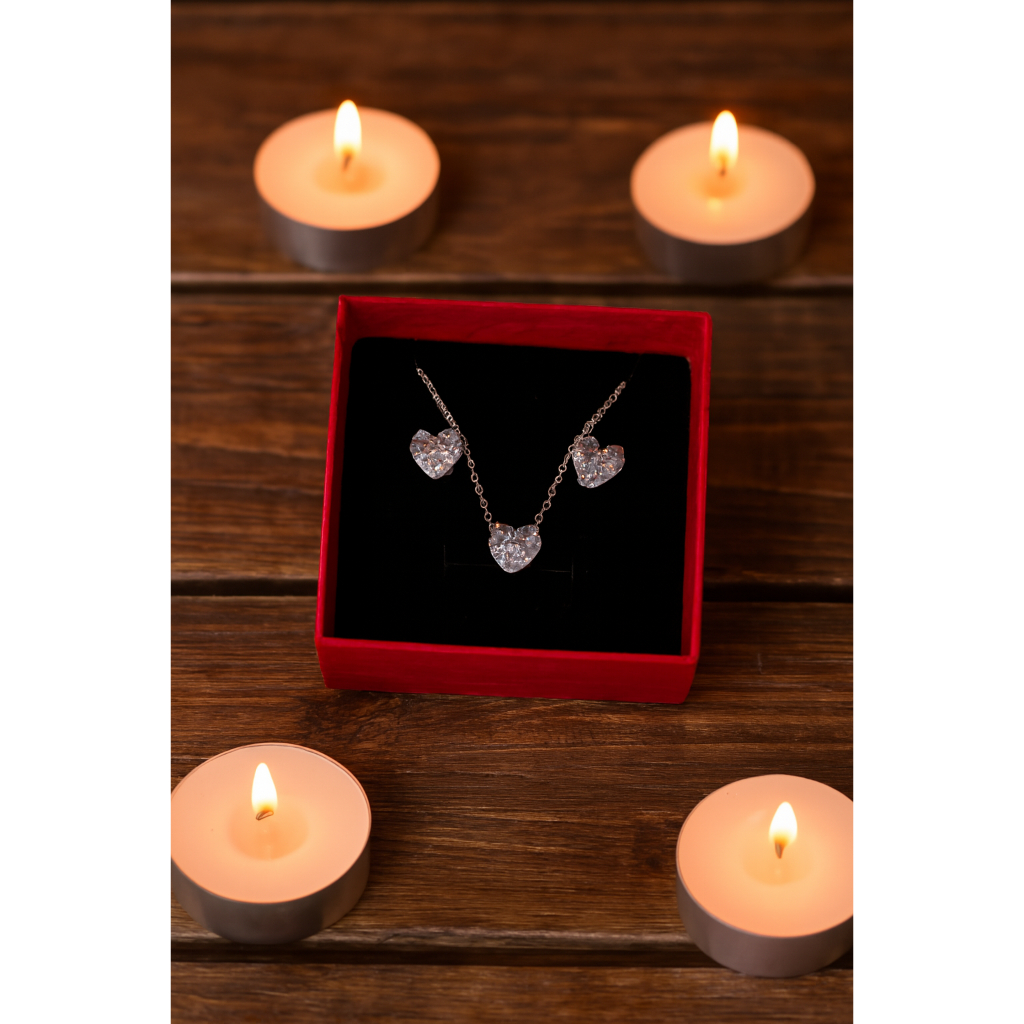 Kit Colar e Brincos Coração Brilho extraordianrio em Aço Inoxidável - Zirconia - Moda Feminina