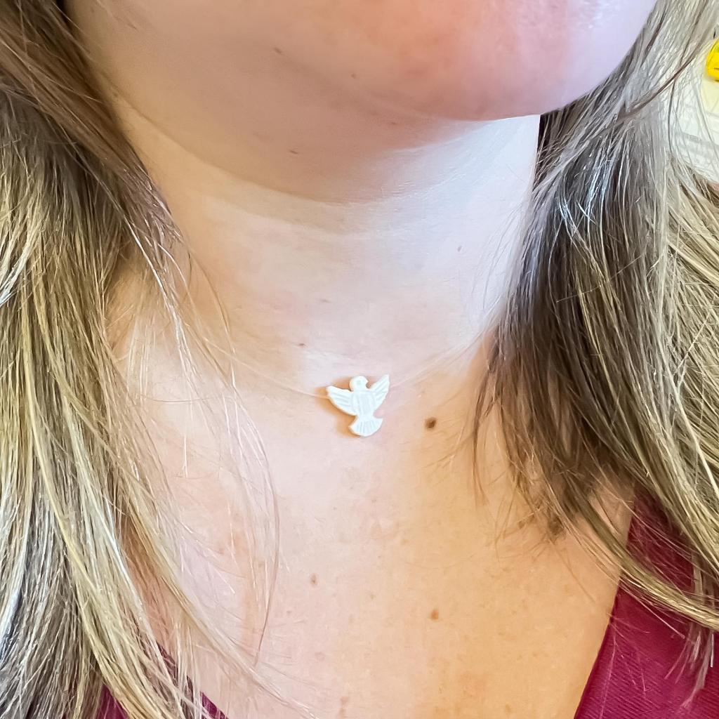 Anuncio referente a kits de colares fio de nylon com pingente Divino Espírito Santo – 45cm FOTOS DO ANUNCIO REAIS DO PRODUTO! Esse colar delicado e cheio de significado é perfeito para quem busca fé, leveza e elegância em um só acessório. Com fio de nylon quase invisível, o destaque fica todo para o pingente do Divino Espírito Santo em madrepérola, que transmite proteção e espiritualidade com um toque sofisticado. 📏 Comprimento: 45cm ✨ Material do pingente: resina tipo madrepérola 📌 Fecho prateado Ideal para usar sozinho ou compor mix de colares. Uma peça versátil que combina com qualquer ocasião! 🛍️ Aproveite para presentear ou renovar sua coleção com essa joia delicada e cheia de simbolismo!