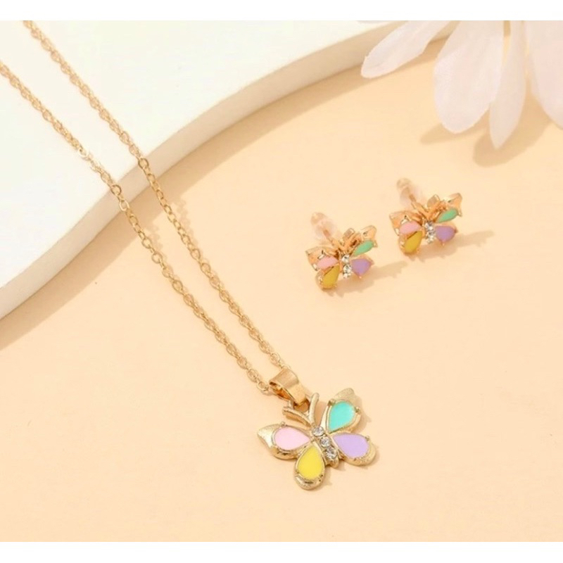 Kit Colar Infantil com Brinco, Bijuteria para Criança | Modelos Borboleta, Laço,Unicórnio,arco-íris e flor