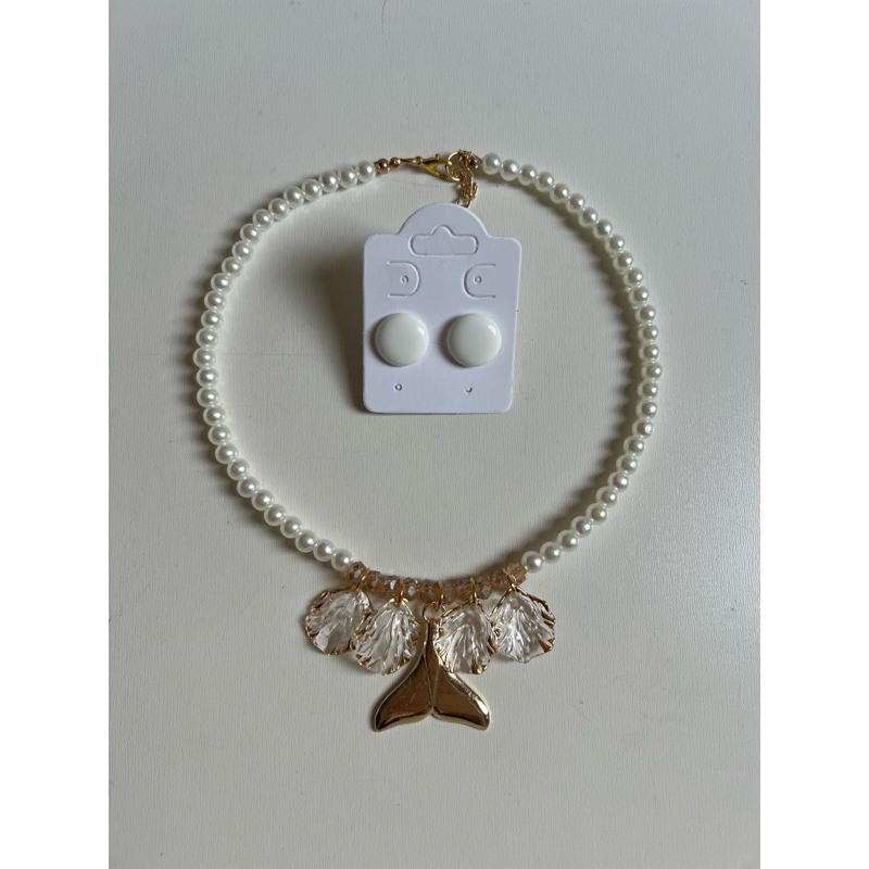 Kit colar moda verão praia + brinco botão resina 1 cm