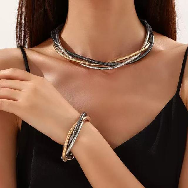 Kit Colar + Pulseira Cobra Dobrável - Gargantilha Giratória em Liga Punk Dourada, Pulseira Flexível (Design Único)