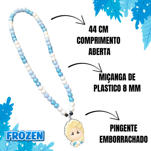 Kit Colar Pulseiras Miçanga Infantil Pingente Frozen Elsa Azul