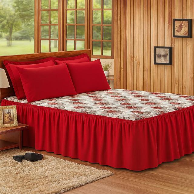 Kit Colcha Cama Aconchego Casal Box Queen Oxford Babado 3 Peças Estampada