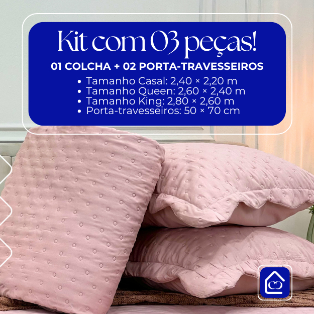 ✨ KIT COLCHA ELEGANCE 400 FIOS - SOFISTICADA E ACONCHEGANTE! ✨ Quer um quarto sofisticado, elegante e extremamente confortável? A estampa Elegance 400 Fios traz exclusividade, maciez e o visual de cama de hotel para qualquer ambiente! PRINCIPAIS BENEFÍCIOS: ✓ TECIDO 400 FIOS: Mais maciez, conforto e aparência premium. ✓ ESTAMPA EXCLUSIVA: Elegance, sofisticada e aconchegante. ✓ TOQUE SUPER MACIO: Microfibra Premium 100% Poliéster com sensação suave na pele. ✓ NÃO AMASSA: Matelado Boutis com costura reforçada que mantém a colcha sempre bonita. ✓ CORES QUE DURAM: Não desbota mesmo após muitas lavagens. ✓ PRATICIDADE TOTAL: Tecido leve, seca rápido e é antialérgico. ESCOLHA SEU TAMANHO: 📦 CASAL: 2,40m x 2,20m 📦 QUEEN: 2,60m x 2,40m 📦 KING: 2,80m x 2,60m Todos acompanham 02 Porta-Travesseiros (70cm x 50cm) O QUE VOCÊ RECEBE: 📦 01 Colcha Matelada Estampa Elegance 400 Fios 📦 02 Porta-Travesseiros Elegance FICHA TÉCNICA: • Tecido: Microfibra Premium 400 Fios (100% Poliéster) • Acabamento: Matelado Boutis (Costura Reforçada) • Estampa: Elegance (Exclusiva) • Toque: Macio e confortável estilo cama de hotel CUIDADOS SIMPLES: • Lave com sabão neutro. • Não use alvejante. • Seque à sombra. ENVIO E ENTREGA: 🚚 ENVIO RELÂMPAGO • Comprou até 11h? Enviamos no MESMO DIA. • Está no FULL? Chega de 1 a 3 dias. GARANTIA E ATENDIMENTO: 💬 PRECISA DE AJUDA? • Respondemos rápido de Seg a Sex (7h às 22h) e Sáb/Dom (8h às 15h). Traga o conforto e a sofisticação de um tecido 400 fios para seu quarto e transforme sua cama em um verdadeiro refúgio de aconchego!