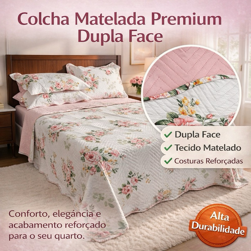 🛏️ Kit Colcha Cobre-Leito 3 Peças – Casal / Queen / King 🌸 Estampada | Floral | Matelado Boutis | Percal Premium Transforme seu quarto com conforto, beleza e praticidade! O Kit Colcha Cobre-Leito é ideal para quem busca um ambiente aconchegante e elegante em todas as estações. ⸻ ✅ Principais Características: • Tecido Percal Premium – macio, resistente e de toque delicado • Matelado Boutis – costura reforçada e acabamento refinado • Antialérgico e respirável – ideal para toda a família • Cores vibrantes que não desbotam • Toque suave e aconchegante, perfeito para qualquer clima ⸻ 📏 Tamanhos Disponíveis: Solteiro: 1,60m x 2,20m + 1 Porta-Travesseiro (70x50cm) 🔹 Casal: 2,40m × 2,20m + 2 Porta-Travesseiros (70×50cm) 🟠 Queen: 2,60m × 2,40m + 2 Porta-Travesseiros (70×50cm) 🔷 King: 2,80m × 2,60m + 2 Porta-Travesseiros (70×50cm) ⸻ ✨ Benefícios: • Lavável à máquina 🧺 • Secagem rápida ☀️ • Não amassa fácil 😍 • Alta durabilidade e resistência 💪 ⸻ 📦 Conteúdo da Embalagem: • 1 Colcha Cobre-Leito • 2 Porta-Travesseiros ⸻ 🚚 Envio: • Pedidos até 12h → envio no mesmo dia • Após 12h → envio no próximo dia útil