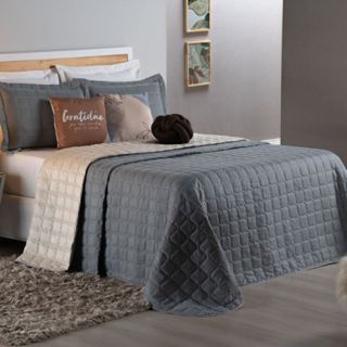 Cobre Leito clssico, tons neutros, dupla face e acabamento matelass (com costura para melhor qualidade e durabilidade da pea) , compem o Kit Dupla Face Paris, que tem tudo para se tornar o seu favorito. Produzido com 180 Fios, o toque do conjunto macio e resistente, promovendo conforto e beleza para suas noites de sono. Kit Cobre Leito Dupla Face Paris 8 Peas Itens Inclusos: 01 Cobre leito Casal Queen 2,40 x 2,60 02 Porta Travesseiros 70 x 50 02 Capas de Almofadas 45 x 45 02 Refil de Almofadas 45 x 45 01 Almofada N Cheia Composio: Cobre Leito: Tecido:100% Polister Almofadas: Tecido 100% Polister Refil: 100% Polipropileno Quantidade de Itens: 08 Itens