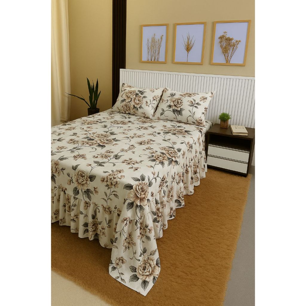Kit Colcha Lençol com Babado Queen 3 Peças Micropercal Toque de Algodão - Kit Completo com Fronhas