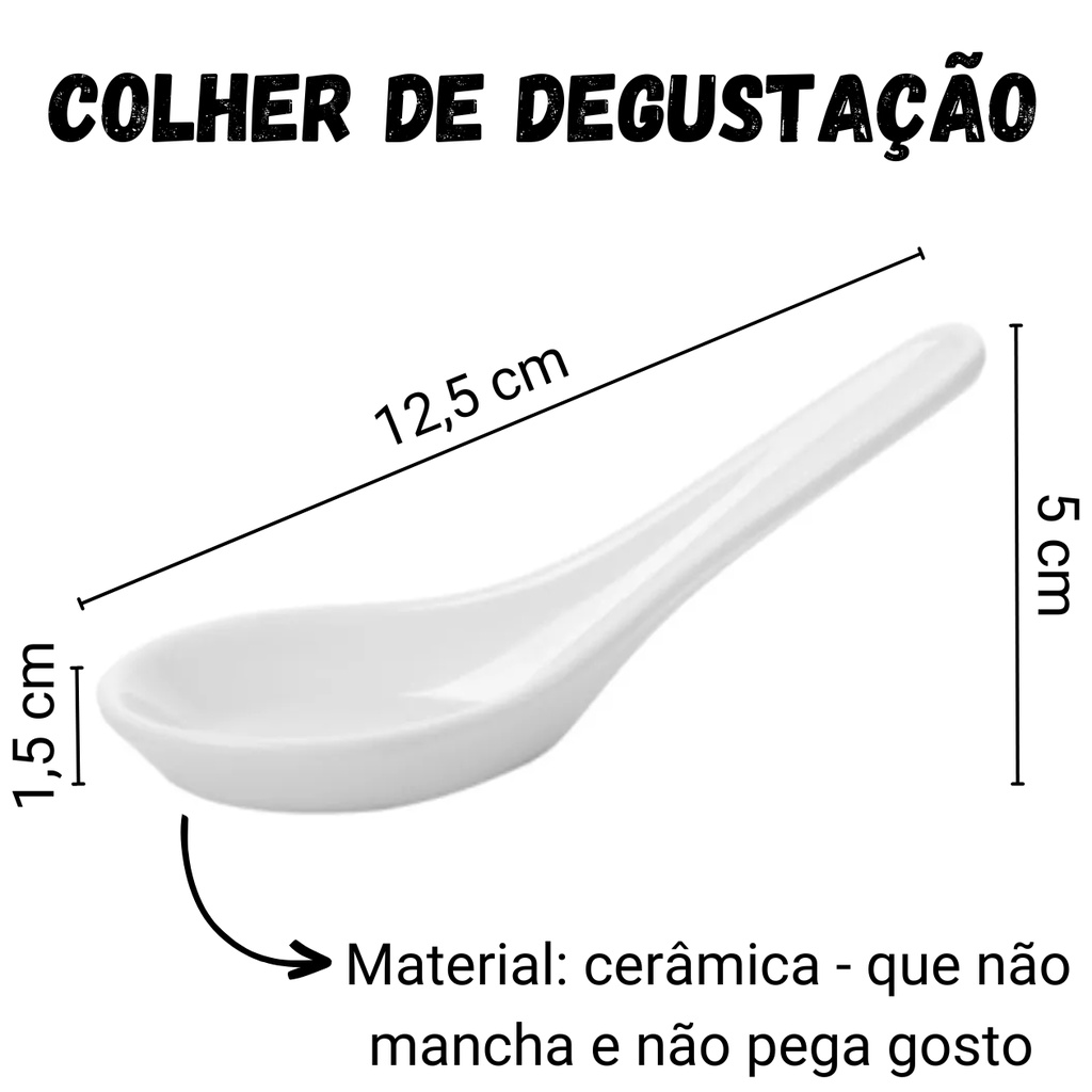 Kit Colher de Cerâmica Branca p/ Doce Gourmet 2 Unidades Colher de cerâmica com design clean, para usar como degustação de pratos doces ou sobremesas em bares, restaurantes, padaria e proporcionar uma experiência gastronômica Ideal para usar junto com ovo de páscoa caseiro, presenteando a pessoa com essa peça para degustar Cor: branco Quantidade: 2unidades Material: cerâmica - não pega gosto, não mancha a cor da comida, não pega cheiro Medidas aproximadas: 5 cm altura X 1,5 cm largura X 12,5 cm comprimento Modelo curvado - apto para empilhar várias colheres e armazenar todas juntas para otimizar espaço Envio imediato, com nota fiscal.
