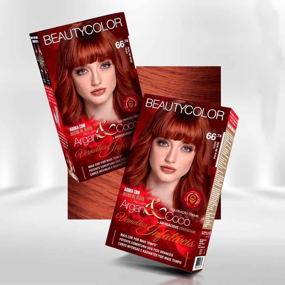 Kit Coloração Permanente Capilar Beauty Color Ruivo Doce de Leite 66.74 Blend de Óleos Aminoácidos