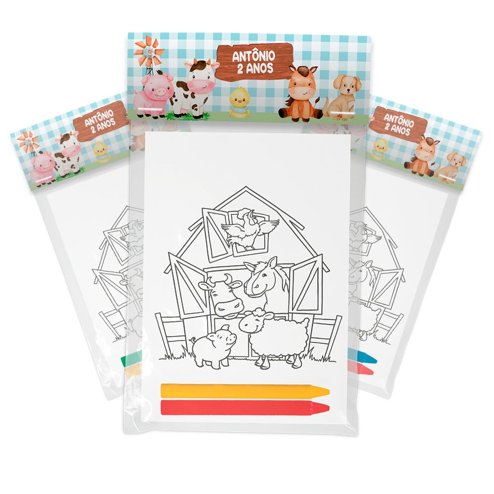 Kit Colorir Com Giz 15,20,25,30,40 Unidades Para Lembrancinhas Tema Fazendinha Menino Personalizado