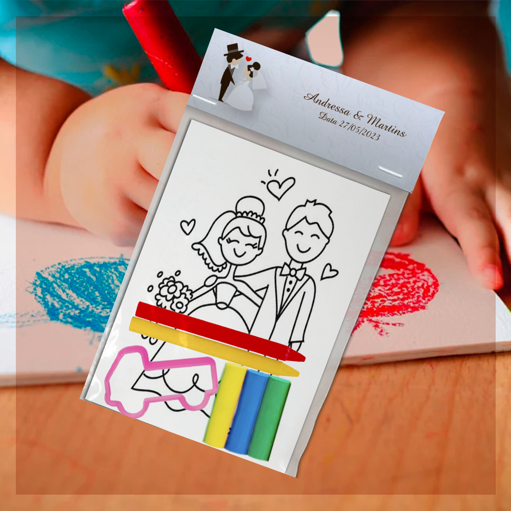 Kit Colorir Com Giz e Massinha 10 Unidades Para Lembrancinhas Tema Casamento Festa Infantil