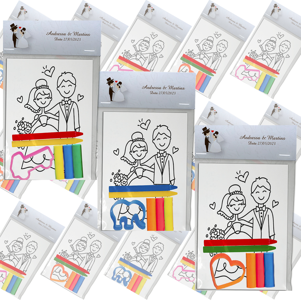 Kit Colorir Com Giz e Massinha 25 Unidades Para Lembrancinhas Tema Casamento Festa Infantil