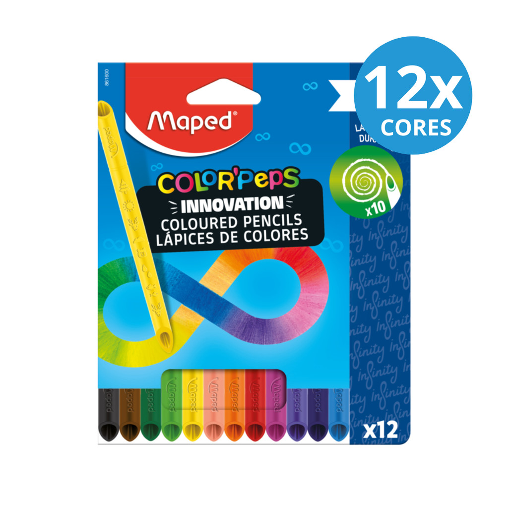 PAIS DE COR 12 CORES MAPED REDONDO - Pedidos feitos até as 12:00 (Seg a Sex) serão enviados no mesmo dia !!! • KIT COM 02 CAIXA DE LAPIS MAPED INFINITO CADA CAIXA COM 12 LAPIS TOTALIZANDO 24 LAPIS - DESCRIÇÃO: • Marca: Maped • Cores: 12 Cores • Lapìs Infinito • Dura 10x Mais • Surpe Resistente • Não e Preciso Apontar • Otima Pegada Com mais Firmeza Otimo Para crianças Finalmente, nossa imaginação imparável encontrou seu par! Lápis de cor inovadores que duram 10 vezes mais. Lápis 100% com ponta, 100% utilizáveis, 0 de desperdício, em conformidade com as regulamentações de brinquedos. Não é necessário apontá-los, eles se afiam enquanto estão colorindo. Lápis triangular para uma melhor aderência. Design original e patenteado que permite às crianças colorir em ambos os lados.