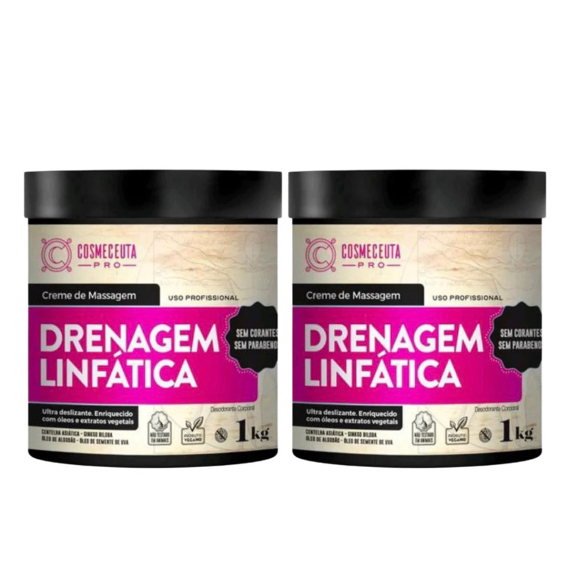 Kit com 02un Creme de Massagem Cosmeceuta Drenagem Linfatica 1kg