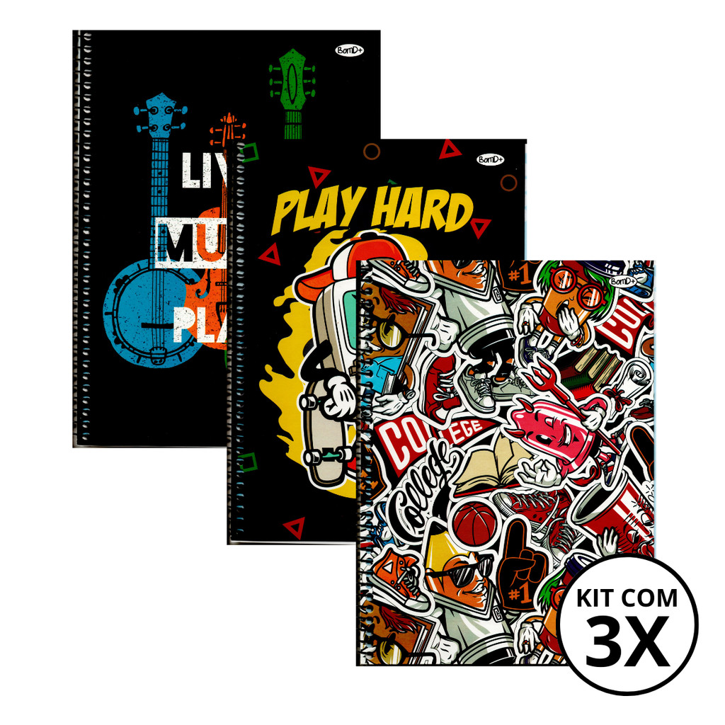 Kit De 3 Caderno Universitário 10 Matérias 160 Folhas Masculino - São DomingosPedidos feitos até às 12:00 horas (seg à sex) são enviados no mesmo dia!- DESCRIÇÃO:• Formato: 20x27,5cm - ideal para mochilas e pastas.• Tamanho Padrão (A4)• Capa: Dura com laminação fosca - resistente e fácil de limpar.• Número de Folhas: 160 folhas - espaço para todas as suas anotações.• Matérias: 10 matérias com divisórias - organização para cada disciplina.• Espiral preta - resistente e prática.• Diversas estampas Masculino: escolha a que mais combina com você!- Quantidade Do Kit:• 03 Cadernos Cada Um Com 160 Folhas- Qualidade São Domingos:• Papel de alta gramatura: resistente e evita que a tinta marque na folha seguinte.• Arame resistente: garante que suas folhas fiquem firmes no lugar.• Acabamento impecável: um caderno que você vai ter orgulho de usar.• Aproveite a oferta por tempo limitado:Chega de cadernos sem graça!Com o Caderno Universitário 10 Matérias Masculino da São Domingos, você vai organizar seus estudos com muito mais estilo e praticidade.Estudantes universitárias: organize suas anotações de todas as matérias em um só lugar.Profissionais: mantenha suas ideias e projetos organizados com um caderno resistente e elegante.Quem busca um caderno bonito e funcional: as estampas Masculino e o acabamento de qualidade garantem um toque especial no seu dia a dia.Compre agora e dê um up nos seus estudos!