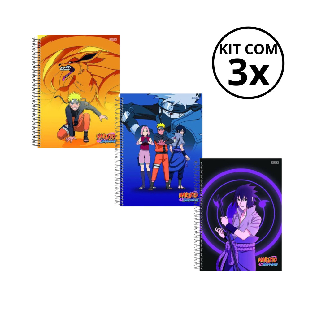 Kit Com 03 Cadernos 10 Matérias Universitário Naruto 160 Folhas - Animativa