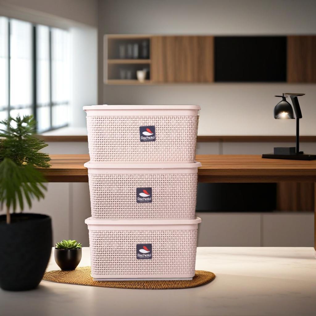 kit com 03 Caixa/Cestos:15,0 L/ Caixa organizadora Rattan Tampa/Praticidade/Multiuso/Armazenamento