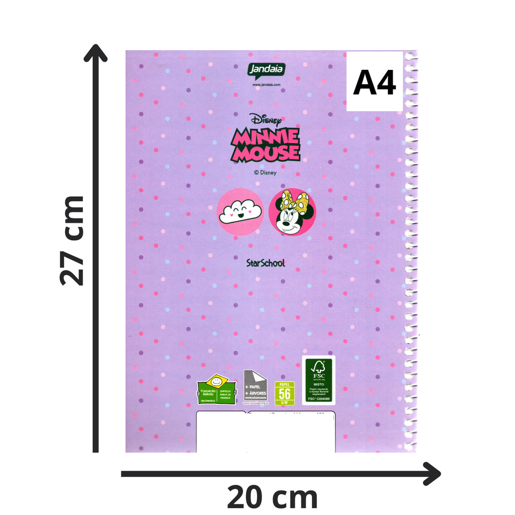 KIT 4 CADERNO UNIVERSITÁRIO 10 MATÉRIAS 160 FLS MINNIE MOUSE - SÃO DOMINGOS Pedidos feitos até às 12:00 horas (seg à sex) são enviados no mesmo dia! DESCRIÇÃO: • Formato: 20x27,5cm • Capa: Dura. • Nº de Folhas: 160 folhas. • Matérias: 10 Matérias. • Atributos: UV reserva/ Lâminação Fosca. • Quantidade: 4 cadernos estampados. COMPOSIÇÃO: • Papel. • Arame. • Plástico.