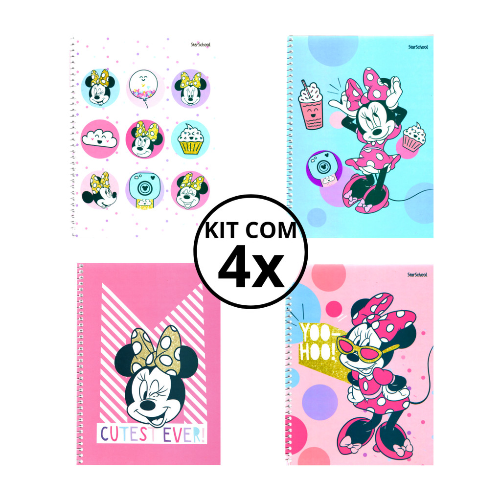 Kit Com 04 Cadernos 10 Matérias Minnie Mouse - JANDAIA