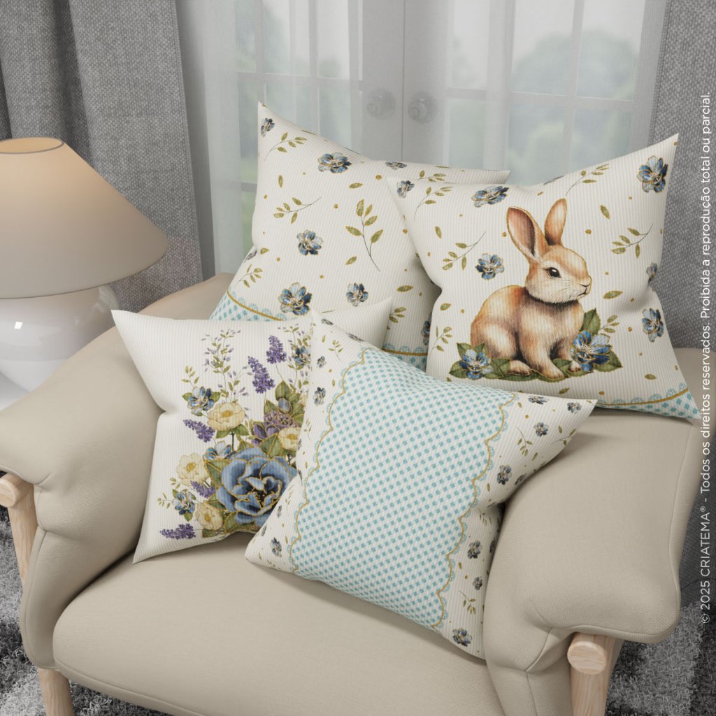 Kit Com 04 Capas de Almofada Decorativa Páscoa Floral Em Oxford 45x45cm Com Zíper