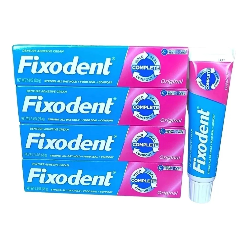 Fixodent original 100% 68g (2 unds). Frete único de apenas 1 clique e compre 2 tubos. 2 tubos fixodent original 100% 68g Protejam-se. Fique em casa! Fixodent é um excelente fixador de próteses dentárias clinicamente testado. Ele diminui a irritação e o desconforto da gengiva causado pelo atrito entre a prótese e a mucosa bucal. Fixodent não interfere no sabor dos alimentos e ainda mata as bactérias que causam mau hálito. Possui fixação de até 13 horas portanto você poderá rir, conversar, comer e beber com conforto e confiança.