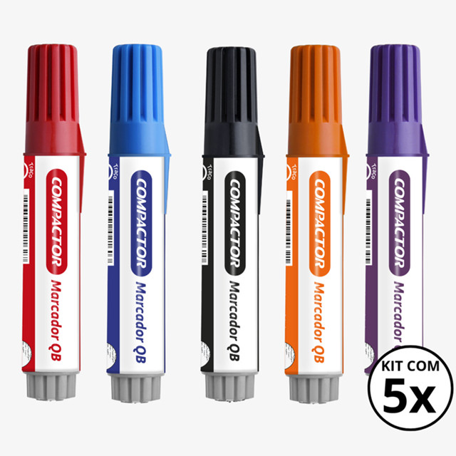 Kit com 05 Marcadores Para Quadro Branco - COMPACTOR KIT:06