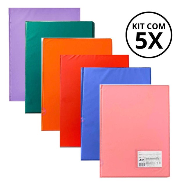 Kit Com 05 Pasta Catálogo com 50 Plásticos Finos Todas As Cores - ACP
