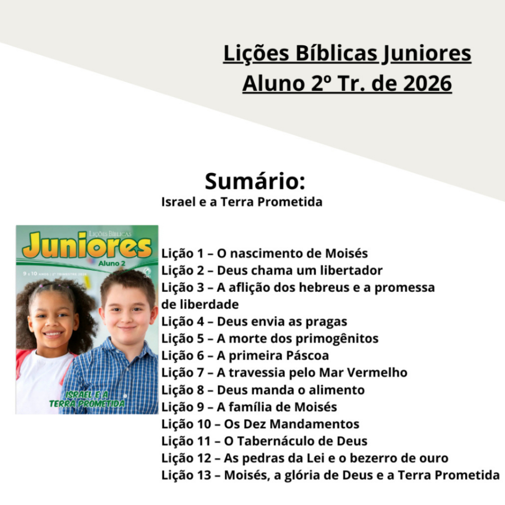 KIT COM 05 Revista Lições Bíblica Juniores Aluno 2º Trimestre 2026