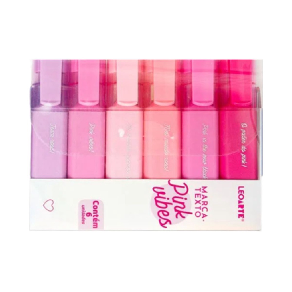 ESTOJO COM 6 MARCA TEXTOS PINK VIBES - LEOARTE Pedidos feitos até 12:00hrs (MEIO DIA) são despachados no mesmo dia!!! DESCRIÇÃO: • Ponta Chanfrada. • Espessura de escrita 1,4mm. • Tinta à base de água. • Não tóxico. • 6 Unidades. • Não Testado em Animais. • Ótima cobertura. COMPOSIÇÃO: • Corpo em Resina Termoplástica. • Ponta de fibra. • tintaà base de água e corantes. Marca texto ideal para você usar na escola ou no trabalho. Estojo com 6 cores, ponta chanfrada. Formato anatômico para conforto e firmeza no uso. Ponta chanfrada faça traços finos e grossos. Personalize o dia a dia para estudar, organizar e decorar.