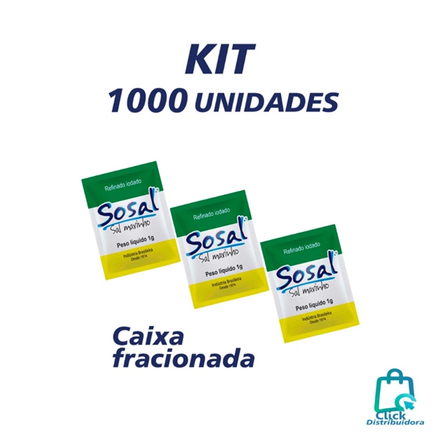 | Kit com 1.000 unidades Sal marinho sachê Sosal 1gr Sal este produto | R$ 22,90 | — | 5.0/5 | 46 |