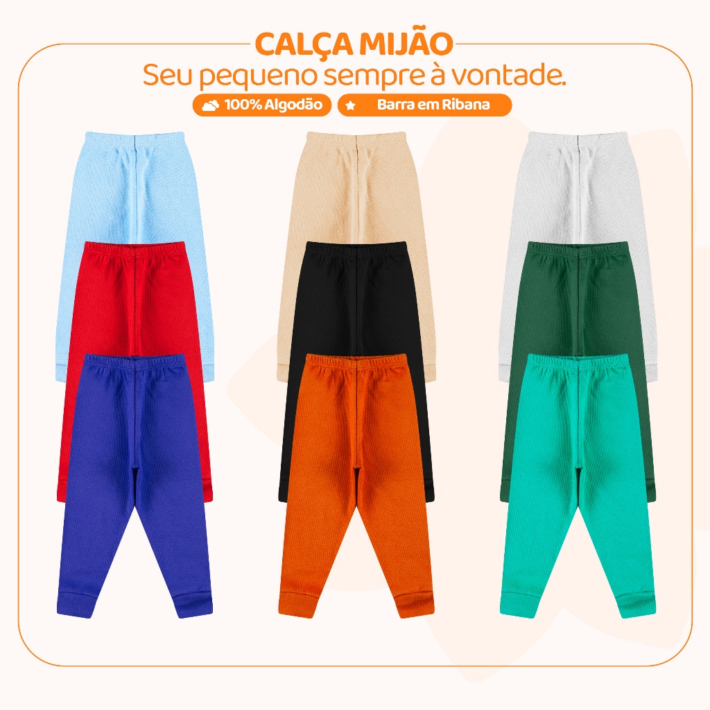 Kit Com 1, 3 ou 5 Calça Mijão De Bebê Menino Infantil Em Algodão Super Confortável Com Barra Em Ribana