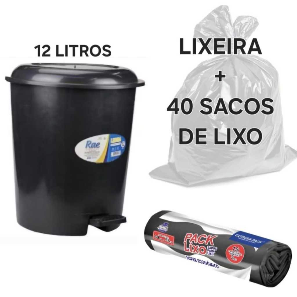 | Kit Com 1 Lixeira Redonda 12 Litros + 40 Sacos De Lixo1 5 litros ... este produto | R$ 29,99 | 14% | 4.4/5 | 23 |