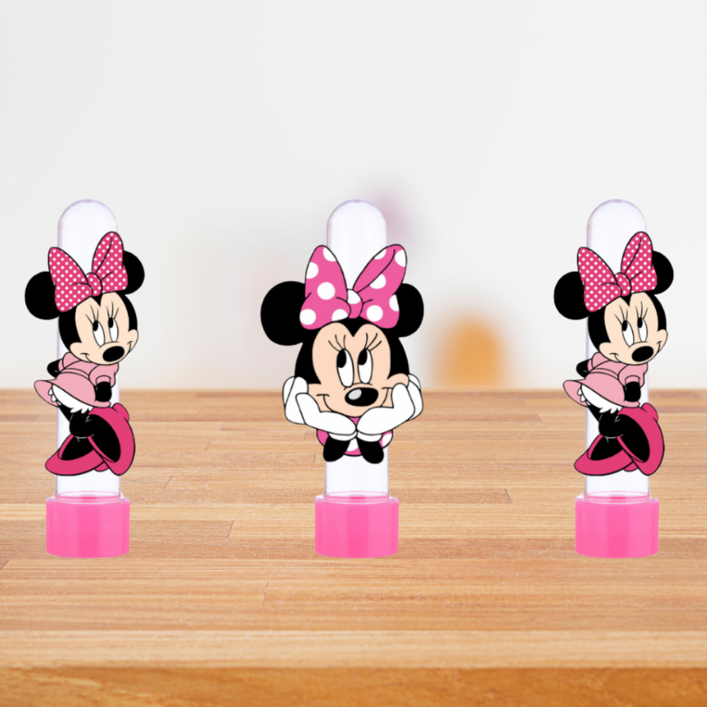 Kit com 10, 20 ou 30 Tubetes Personalizado para Aniversário Minnie Rosa, Tag para Tubete, Apliques 3D para tubete