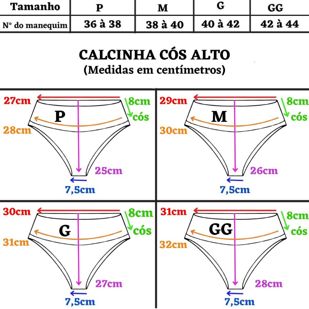 peças Kit Conforto CONFECCIONADA COM MICROFIBRA 92% POLÍESTER,08% ELASTANO, FORRO 100% ALGODÃO - Direto da Fabrica - Cores Sortidas - Envio Imediato - Conforto e Qualidade Garantida Obs.: O kit vai com cores sortidas, não conseguimos fazer o kit com cores selecionadas. Preto, Rosa romance, Chocolate, satim, Rubro.fantastico,verde teos,marinho,chumbo e azul frozem CINTURA: P: 30 CM M: 31 CM G: 32 CM GG 35 CM ALTURA: P: 25 CM M: 28 CM G: 30 CM GG 31 CM LARGURA DO FUNDO: FRENTE 7cm COSTA 9 ALTURA DO CÓS: 9cm OBS: Essas medidas são da peça fechada, exceto a largura do fundo e a altura do cós, caso prefira medir por circunferência, é só dobrar as medidas acima.