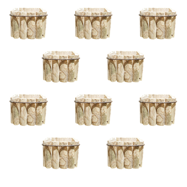 Kit Com 10 Cachepot Artesanal De Madeira Pau De Café Rústico Decorativo 15 cm