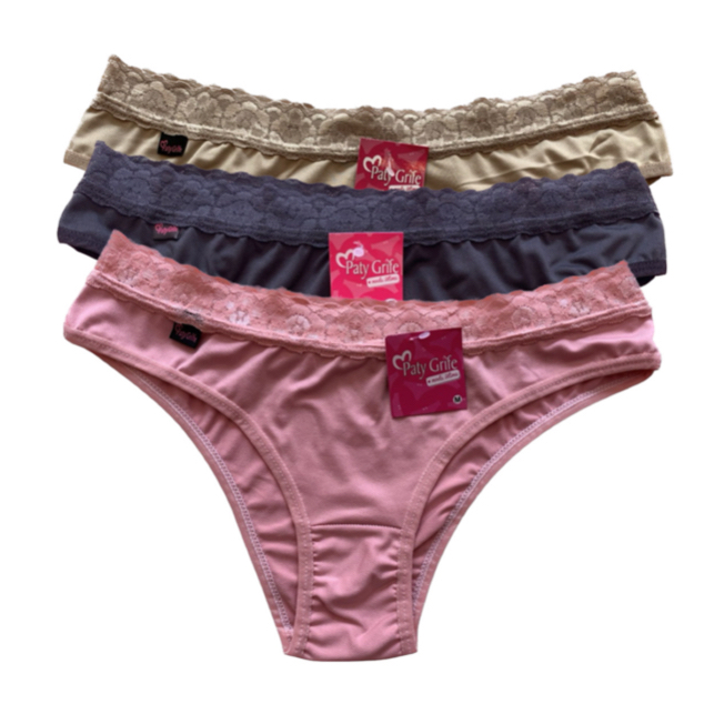 kit com 10 Calcinhas em Microfibra com Cintura de Renda Modelagem Baixa Paty Grife