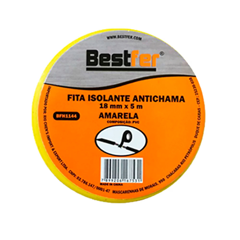 | Kit Com 10 Fita Isolante Antichama Amarela 18mmX 5m Bestfer este produto | R$ 79,00 | — | 4.9/5 | 5 |