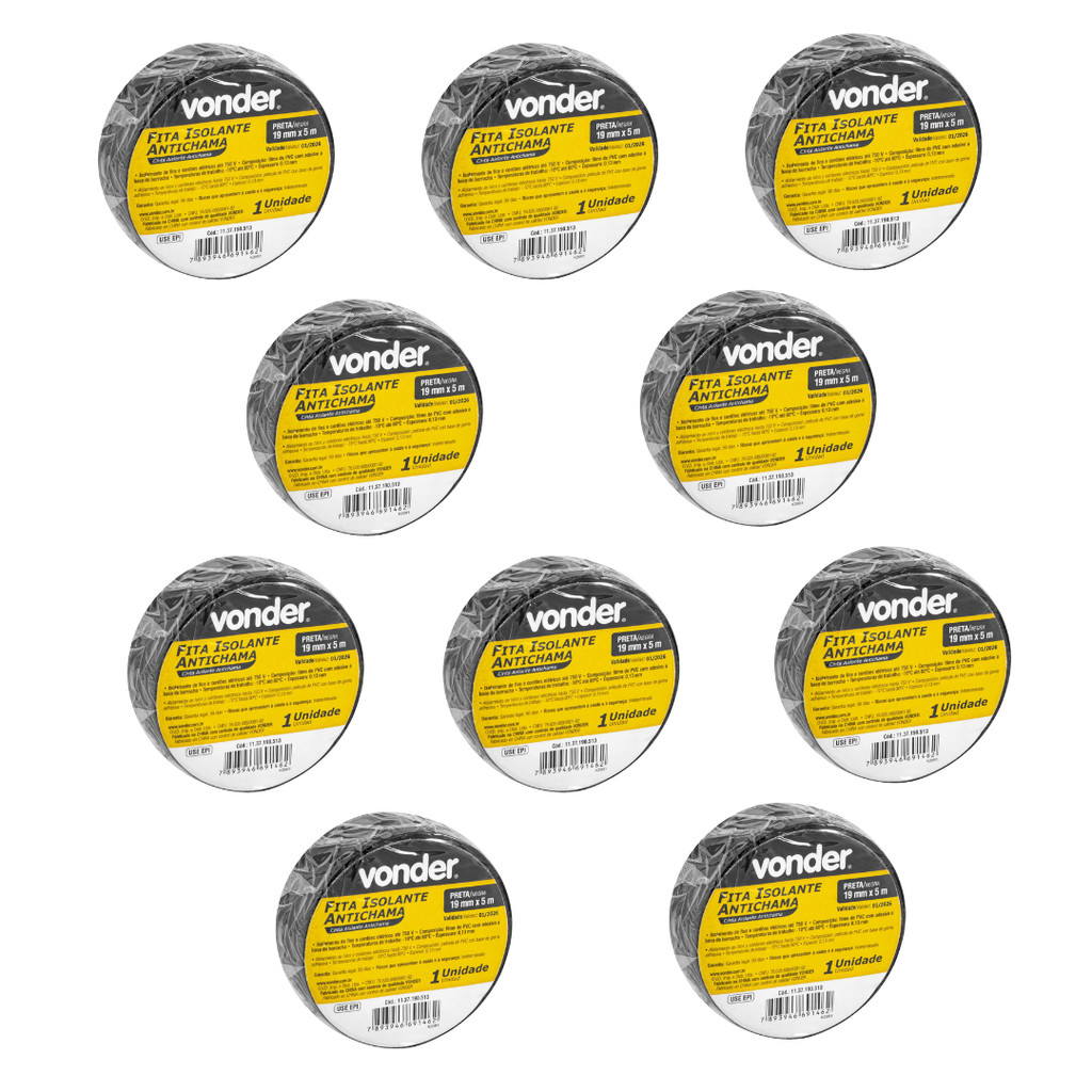 Kit com 10 Fitas Isolantes, 19,0 mm x 5 Metros Pretas -VONDER