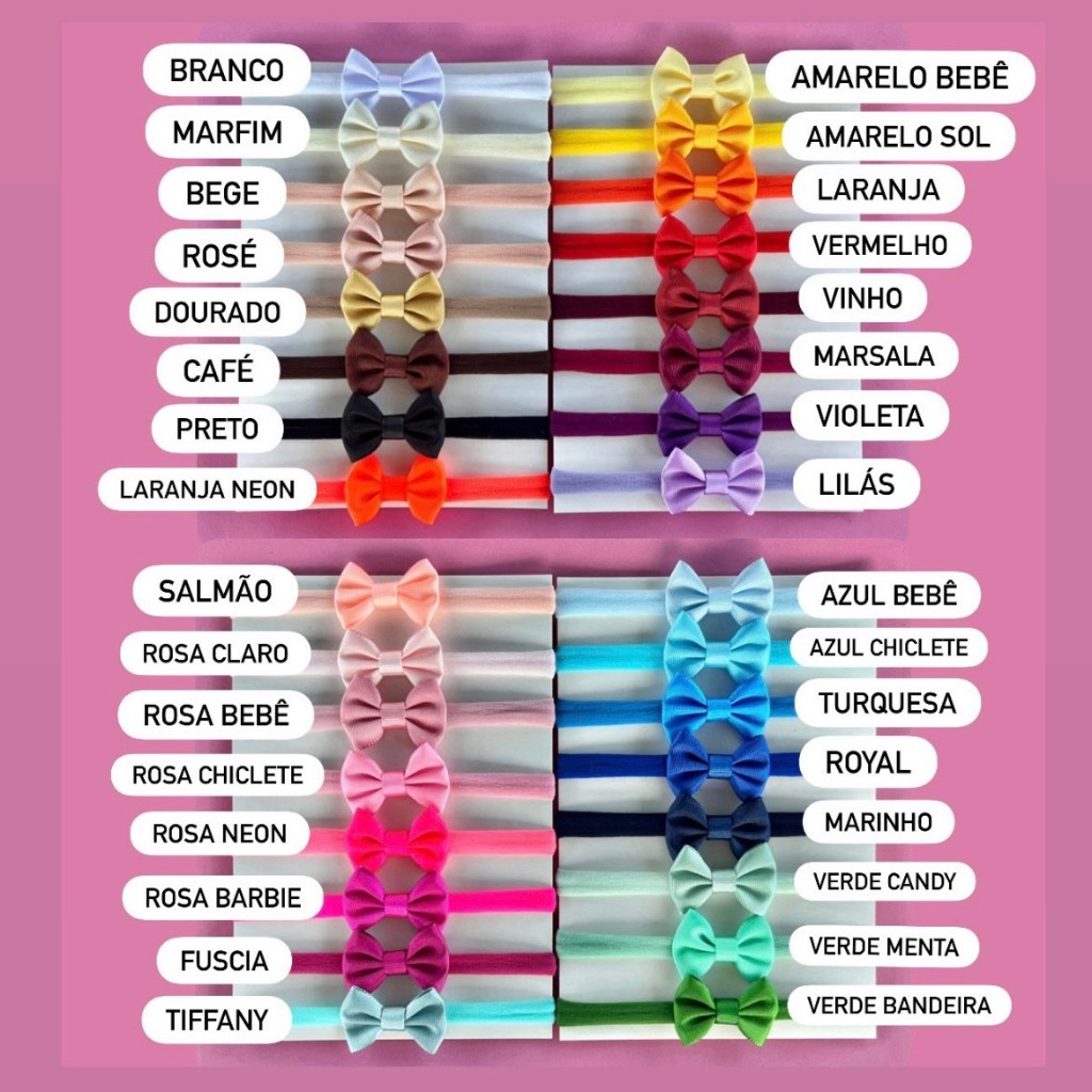 TAMANHO DO LAÇO: 7 CM / PARA BEBÊS DE 0 A 18 MESES PRAZO DE ENVIO DO PRODUTO - Por disponibilizarmos a opção do cliente estar escolhendo as cores que deseja em seu kit, o envio do pedido será realizado em até 3 dias úteis após o pagamento; ENVIO E DISPONIBILIDADE DAS CORES - Enviar pela "mensagem ao vendedor' ou pelo chat do vendedor. Verificar a disponibilidade das cores antes da realização da compra; PRAZO DO ENVIO DAS CORES - Até 24h após o pagamento. Caso não haja o envio, serão enviadas cores aleatórias.